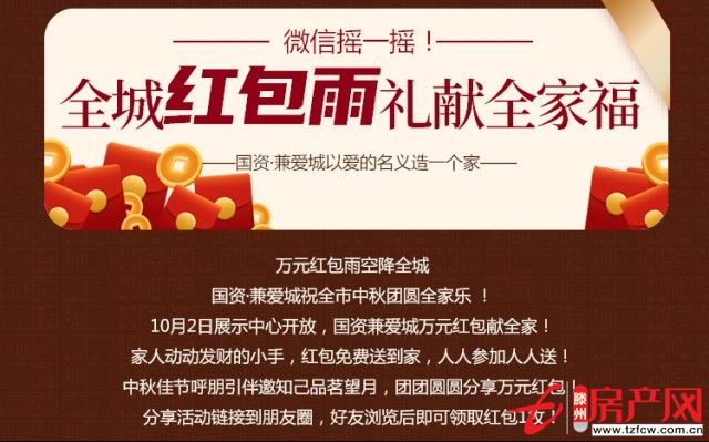 祖國華誕萬民賀,中秋團圓全家福。在這雙節同慶的日子里,國資·兼愛城“微信搖一搖,百萬豪禮免費送”活動9月26日火爆開啟!