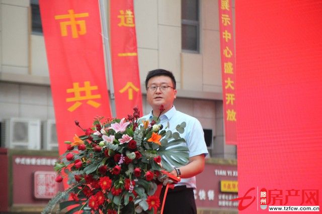 活動當日,滕州市國資運營及旗下公司領導共同參與了開放儀式。在來賓們熱烈的掌聲中,滕州市城鎮土地投資開發有限公司董事長董長旭先生登臺致辭,給現場的朋友們帶來了精彩的項目分享,公司秉承“與城相伴,與市共榮”的企業理念,致力于打造綠色和諧的人居環境。隨后,滕州市國資公司董事長馬燦亮先生宣布國資·兼愛城展示中心盛大開放。