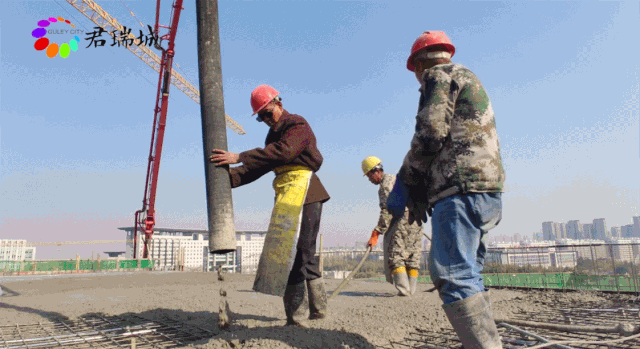 11月11日,滕州的初冬晴空萬里,風和日麗。君瑞城購物中心施工現場各項工作有條不紊。11時11分,伴隨著鞭炮鳴響、煙花綻放,混凝土泵車澆筑君瑞城三期最后一施工區塊,標志著君瑞城購物中心全面封頂!