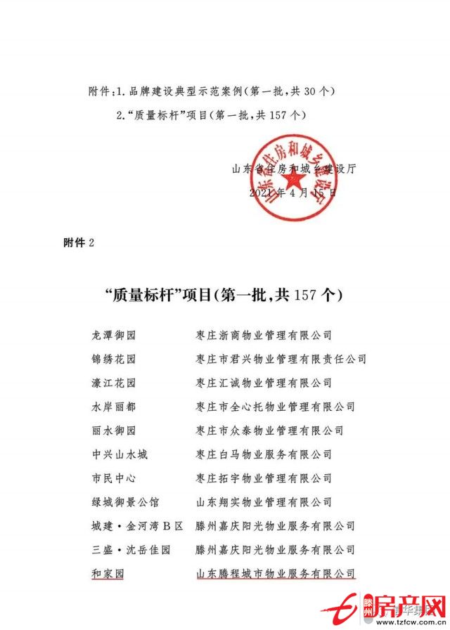 近日,從山東省住房和城鄉建設廳傳來喜訊,經初審推薦、專家審核等程序,信華集團騰程物業公司的和家園項目被評為“質量標桿”項目。