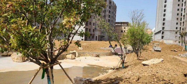 高低的樹木雖然還看不到最后的景色,但是僅僅最近幾天種下的榆樹和樸樹都是絕大多數小區沒有的。