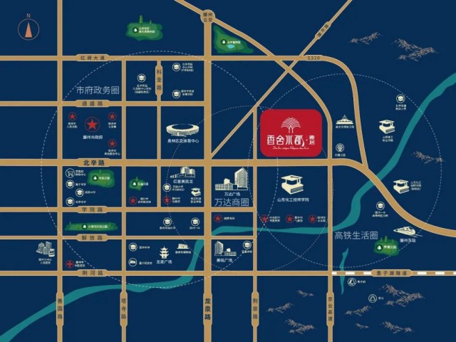 總的來看,城市中軸之上,業態聚集,官邸林立、豪宅盤踞,是當之無愧的核芯地段。同樣,滕州也是如此。