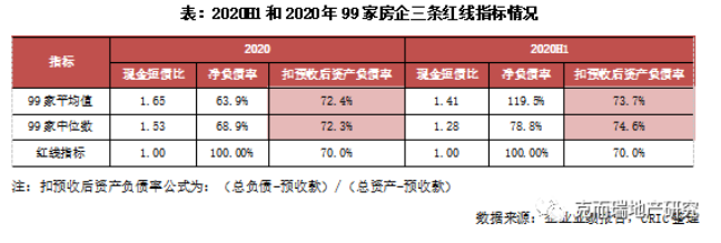 所謂“三道紅線”,是指2020年8月住建部、央行召集房企開會時提出的三個監管要求——剔除預收款的資產負債率不得大于70%、凈負債率不得大于100%、現金短債比不得小于1倍。