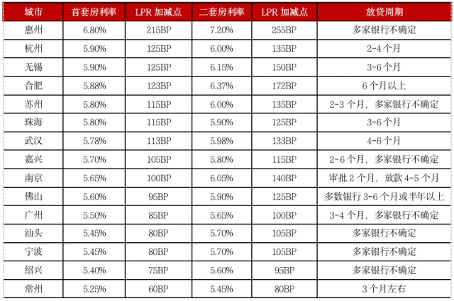 表:6月底至7月初多個熱點城市上調房貸利率并延長放貸周期