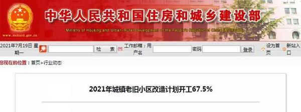 7月19日,住房和城鄉建設部發布數據顯示,今年1-6月份,全國新開工改造城鎮老舊小區3.64萬個,占年度目標任務的67.5%,較5月末增加了25.1個百分點。