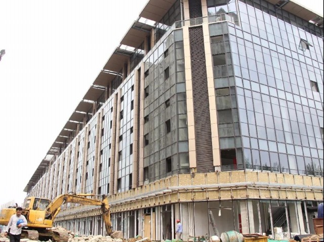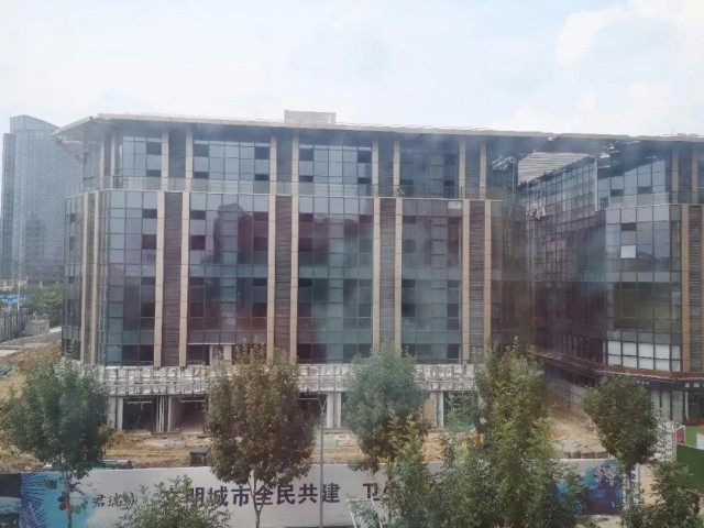 君瑞城購物中心2#樓、3#樓玻璃幕墻安裝工作已經收尾。從善國路和祥瑞路上看去,深藍色的玻璃幕墻,使建筑物玲瓏起來,大大提升了建筑的顏值,整個建筑體都像自帶濾鏡。
