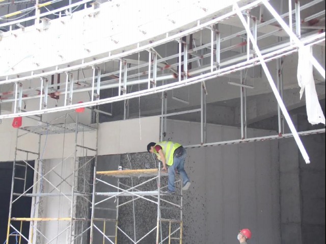 君瑞城購物中心北立面(沿北辛路面)石材安裝工程。鋼筋水泥冰冷的建筑包裹上石材后,購物中心整體視覺感官將大大提升。