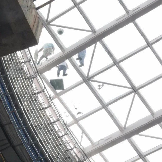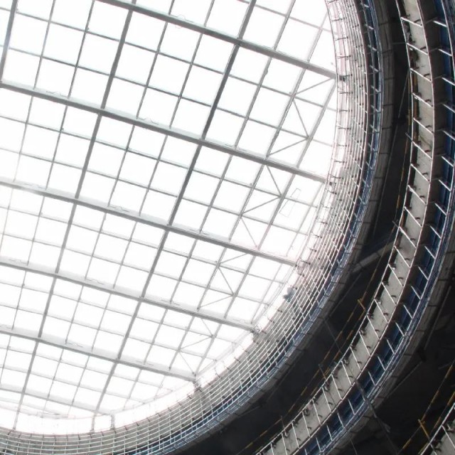 極具君瑞城特色的購物中心大穹頂安裝已近收尾,穹頂玻璃已全部安裝完畢。