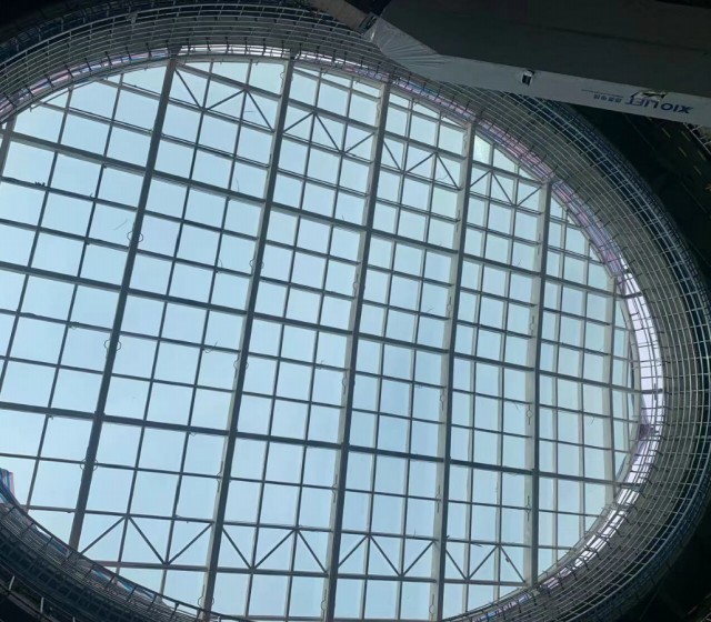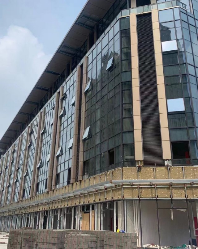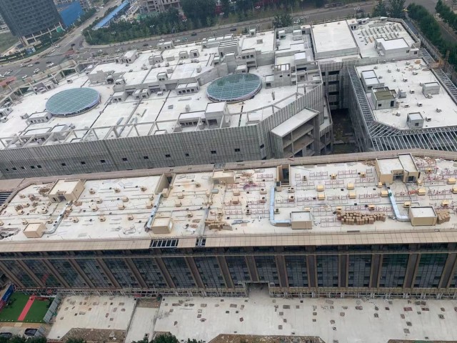 目前,君瑞城購物中心2#和3#三至五層的玻璃幕墻已經全面完工,1#樓穹頂玻璃安裝完成;1#樓外立面正在龍骨焊接、石材安裝。