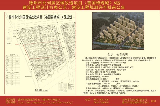 北劉居區域改造項目(善國錦繡城)A區建設工程設計方案公示、建設工程規劃許可批前公告