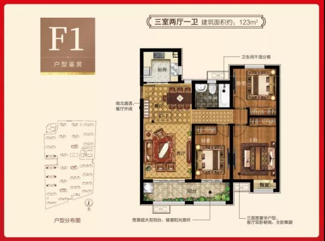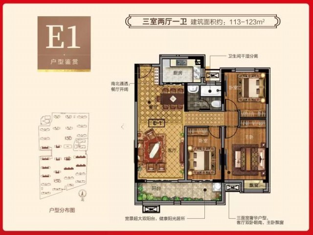 四是精美戶型。國資兼愛城規劃了約113-142㎡三面寬戶型,南北通透,戶戶雙陽臺,采光極佳,視野開闊,最大限度保證生活舒適度。