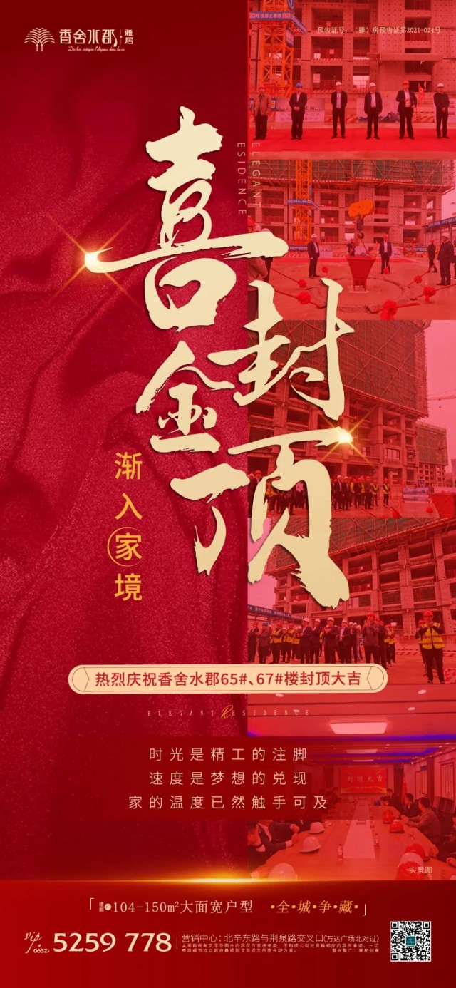 從一紙藍圖到喜封金頂,從鋼筋水泥到溫馨居所。2021年10月10日香舍水郡,喜封金頂!用心,鑄就品質;實力,成就高度;速度,改變生活;繁華,未來可期!