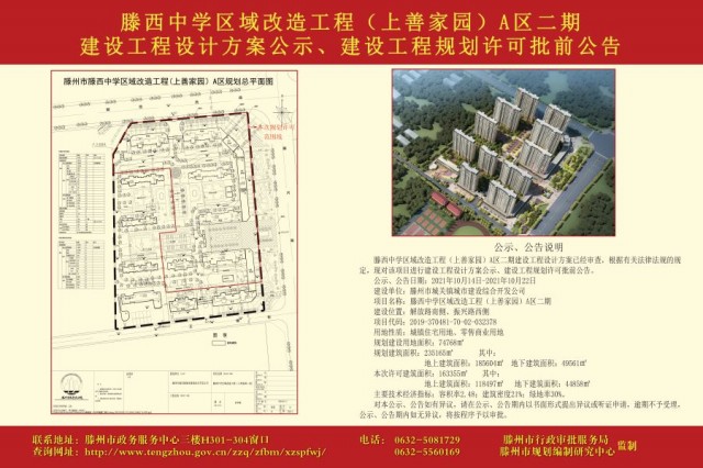 滕西中學區域改造工程A區二期建設工程設計方案公示、建設工程規劃許可批前公告