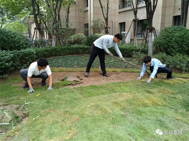 小區自2014年上房以來,因水土、天氣、人為等原因造成了園區內道路兩側、背陰面等處的地面綠化缺失較為嚴重的情況,影響小區內的整體美觀,騰程物業針對此類情況,對苗木稀疏、長勢不佳的部分路段制定了綠化補植實施方案,并組織人員實施。從10月初開始,物業工作人員對退化的裸露地段加密補植了同規格的草坪、麥冬等,截至目前,補植面積累計約1300平方米。同時,對補栽的綠植實行專人管護,確保成活率。