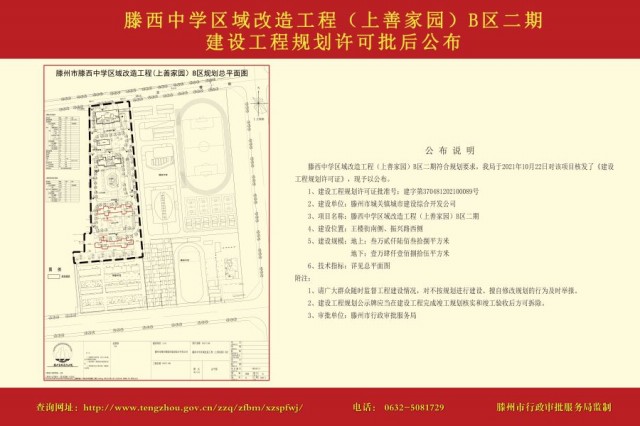 滕西中學區域改造工程(上善家園)B區二期建設工程規劃許可批后公布