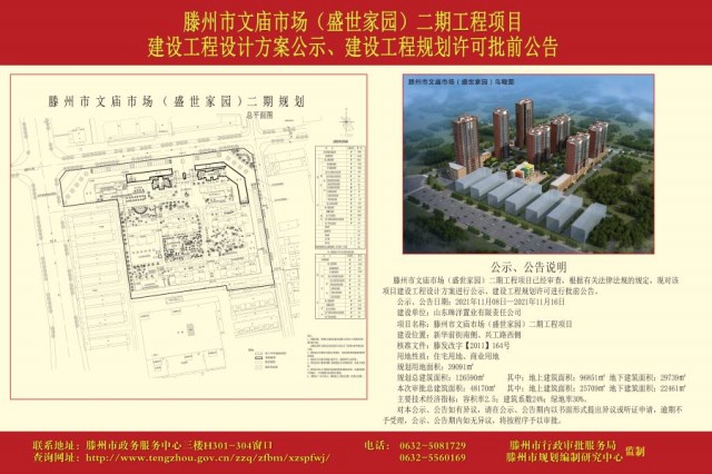 文廟市場(盛世家園)二期工程項目建設工程設計方案公示、建設工程規劃許可批前公告