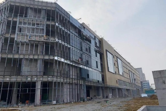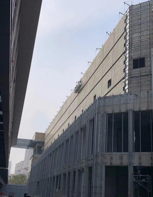 大商業南側2層(沿祥瑞路)以上石材幕墻完成。