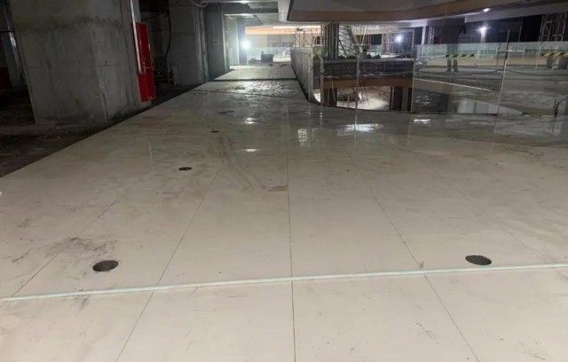 購物中心北側(沿北辛路)地面路基鋪設完成,準備硬化。