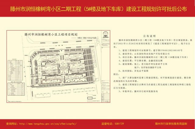 潤恒橡樹灣小區二期工程(5#樓及地下車庫)建設工程規劃許可批后公布