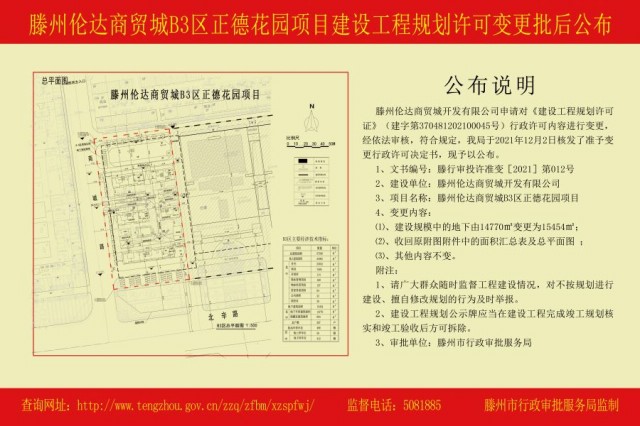 倫達商貿城B3區正德花園項目建設工程規劃許可變更批后公布