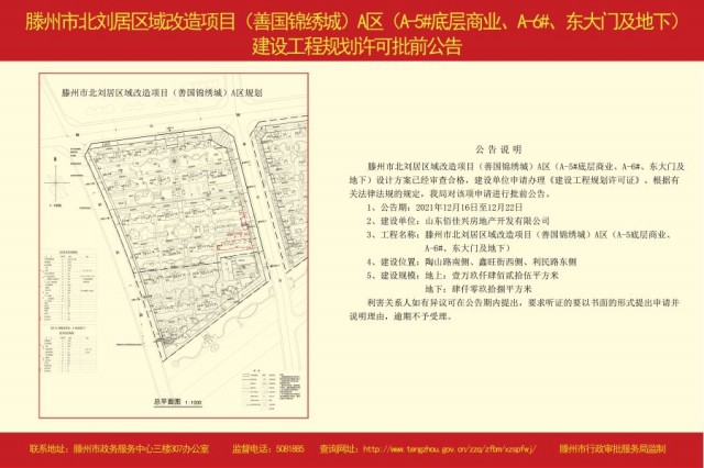 北劉居區域改造項目A區(A-5#底層商業、A-6#、東大門及地下)建設工程規劃許可批前公告