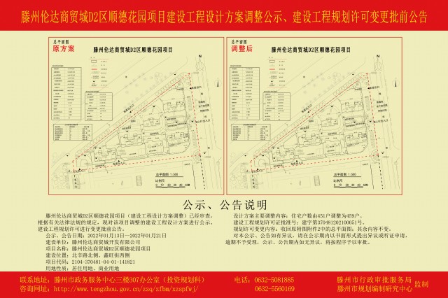 倫達商貿城D2區順德花園項目建設工程設計方案調整公示、建設工程規劃許可變更批前公告