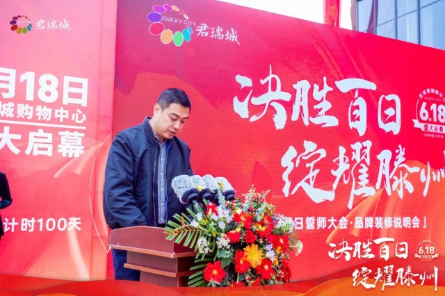 君瑞城購物中心總經理徐翔先生表示沉淀已久、一朝綻放,厚積而薄發。君瑞城購物中心依托得天獨厚的區位、品質、團隊支撐優勢,定可以問鼎滕州商業新中心。他表示,此次誓師大會的順利召開預示著君瑞城購物中心全面進入沖刺階段,全體員工將以最飽滿的熱情、最昂揚的斗志爭分奪秒、全力以赴誓保6月18日盛大開業、華彩綻放!