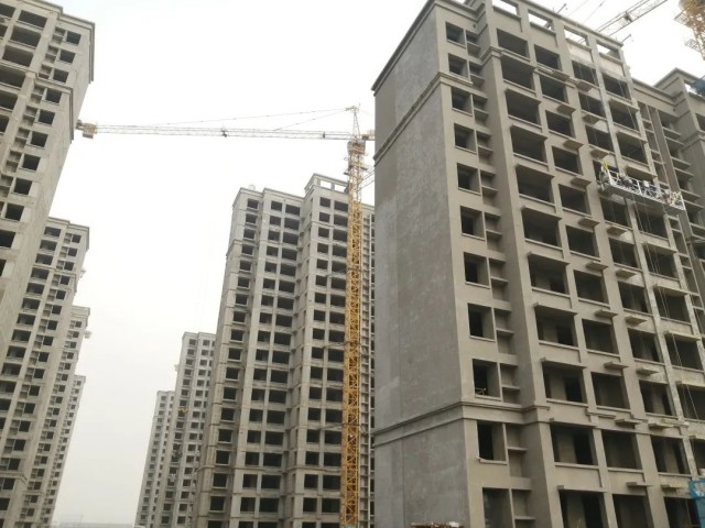 目前,一期所有樓棟的內墻抹灰基本完工,部分樓棟外墻已經施工。