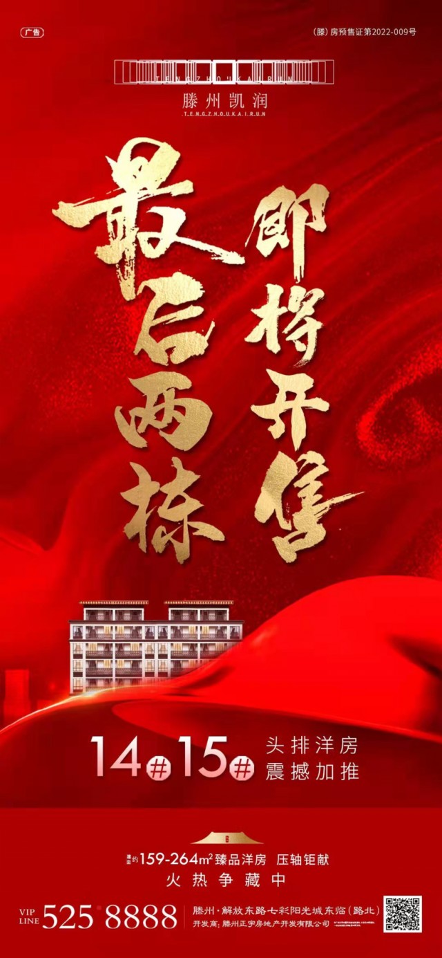 滕州凱潤14、15#樓頭排洋房3月20日盛大加推,建面約159-264㎡奢闊四房實現你的理想生活,搶占全明頭排,臻席以待!