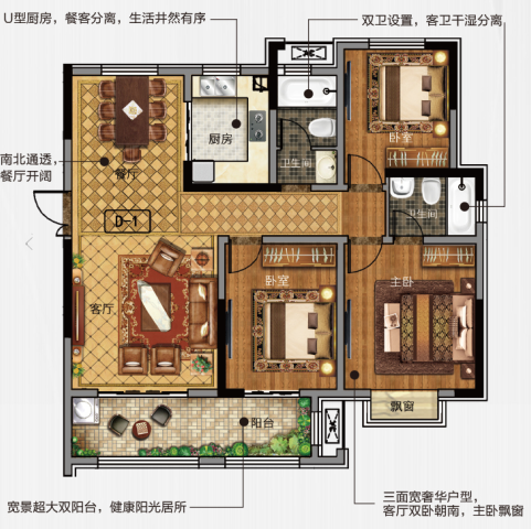 三開間朝南,觀景飄窗,約7.3米雙聯闊陽臺,清風陽光穿堂而過,疫情當前,實現全天候不間斷的室內外空氣交換。