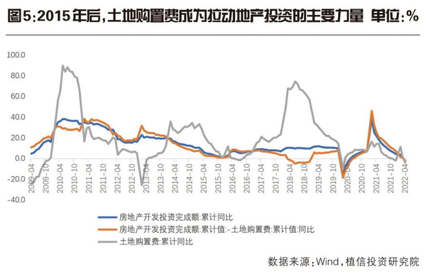 根據國家統計局的解釋,房地產開發投資是指報告期內完成的全部用于房屋建設工程、土地開發工程的投資額以及公益性建筑和土地購置費等的投資。從土地購置費和建安工程投資運行情況看,本輪房地產投資筑底時間可能較長。