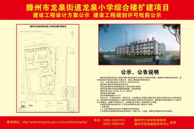 龍泉小學綜合樓擴建項目建設工程設計方案公示、建設工程規劃許可批前公告