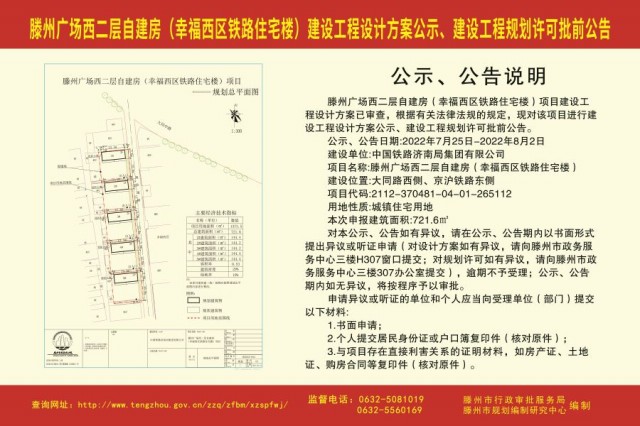 幸福西區鐵路住宅樓項目建設工程設計方案公示、建設工程規劃許可批前公告