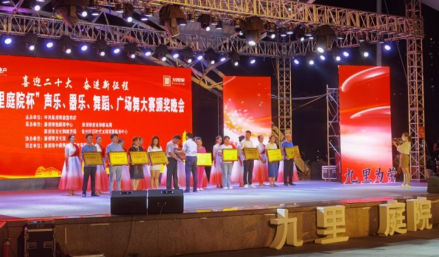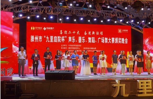 8月13日晚,“喜迎二十大、奮進新征程”滕州市“九里庭院杯”聲樂、器樂、舞蹈(廣場舞)大賽頒獎晚會在龍泉廣場隆重舉行。市委宣傳部、市文化和旅游局、市融媒中心及市信華集團有關領導為獲得大賽一、二、三等獎的選手及優秀組織獎的單位頒發了榮譽證書。