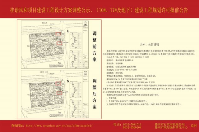 桂語風和項目建設工程設計方案調整公示、(10#、17#樓及地下)建設工程規劃許可批前公告