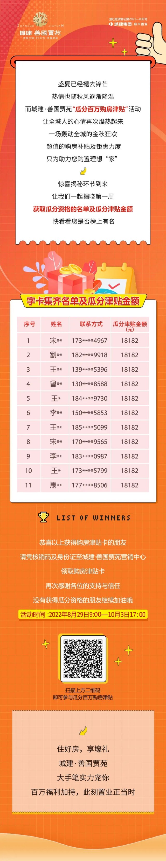 幸運兒出沒!百萬購房津貼瓜分,第一周獲取瓜分資格名單公布