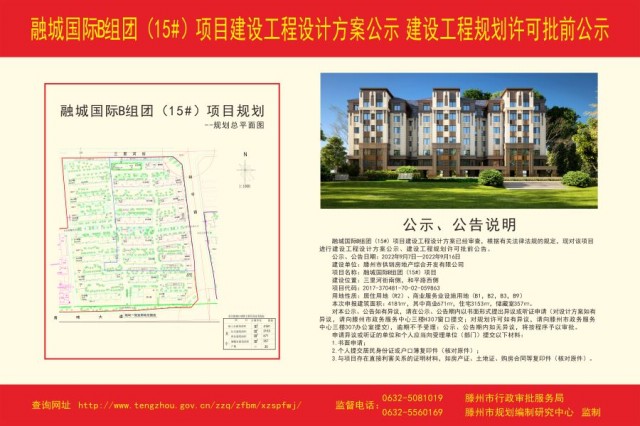 融城國際B組團(15#)項目建設工程設計方案公示、建設工程規劃許可批前公告