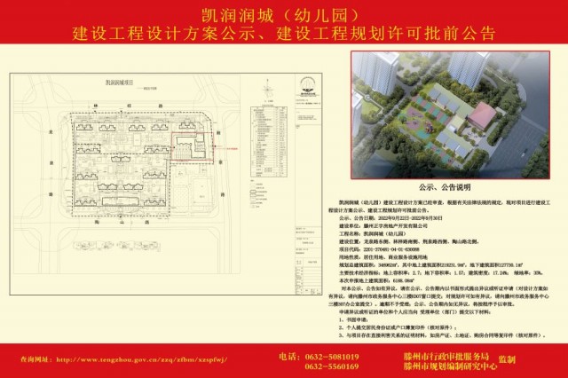 凱潤潤城(幼兒園)建設工程設計方案公示、建設工程規劃許可批前公告