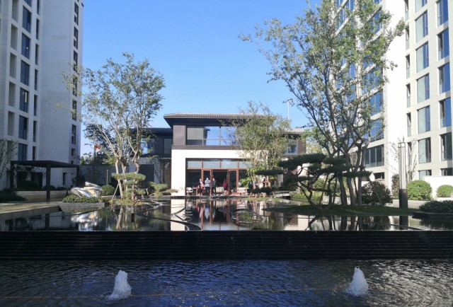 中房九里庭院項目由中國美術學院規劃和建筑景觀設計,采用新亞洲建筑風格,即保持了傳統建筑的精髓,又有效地融合了現代建筑元素之美。戶型由9幢7-11層花園洋房,2幢7層疊拼,17幢3層排屋組成,形成半圍合的空間布局。排屋均為院落式布局。洋房和疊拼采用一梯兩戶布置,每戶皆有專享獨立電梯廳,地下和一層均設豪華入戶大堂。戶型設計兼顧舒適性,私密性和整體性,營造放松舒適的居家氛圍,滿足人們對高質量高品位生活的需求。