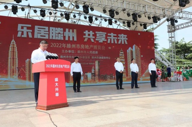 為全面展示我市住房建設成就,持續釋放住房消費潛能,10月1日,滕州市舉辦2022年房地產博覽會。本次房博會由滕州市人民政府主辦,滕州市住房和城鄉建設局、滕州市融媒體中心承辦,以“政府搭臺、企業唱戲、百姓受益”為宗旨,以“樂居滕州,共享未來”為主題,更好的滿足住房剛性和改善性需求,激發市場活力,拉動經濟社會發展。棗莊市住建局局長陳忠奇、副局長王懷文,滕州市委常委、副市長趙煒,滕州市融媒體中心主任、上善傳媒科技有限公司董事長劉子舜,滕州市住建局局長馬培安出席開幕式。