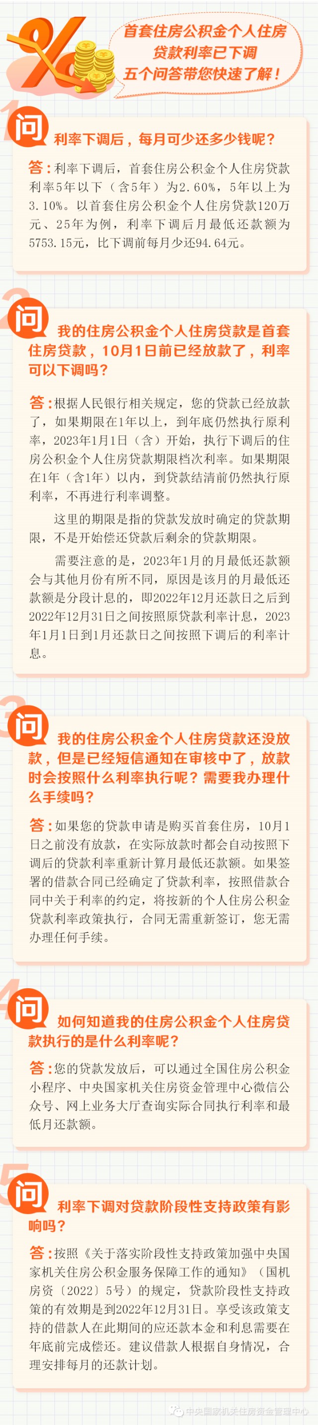 11日,中央國家機關住房資金管理中心發布五個問答,對首套個人住房公積金貸款利率下調后的相關問題作出解答。