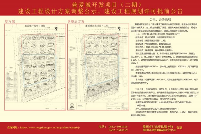 兼愛城開發項目(二期)建設工程設計方案公示、建設工程規劃許可批前公告
