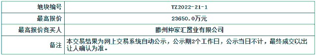 2022年11月17日,滕州仲家匯置業有限公司以2.365億元競得滕州市TZ2021-21-1號商業地塊,該地塊掛牌成交面積40425平方米,具體詳情如下: