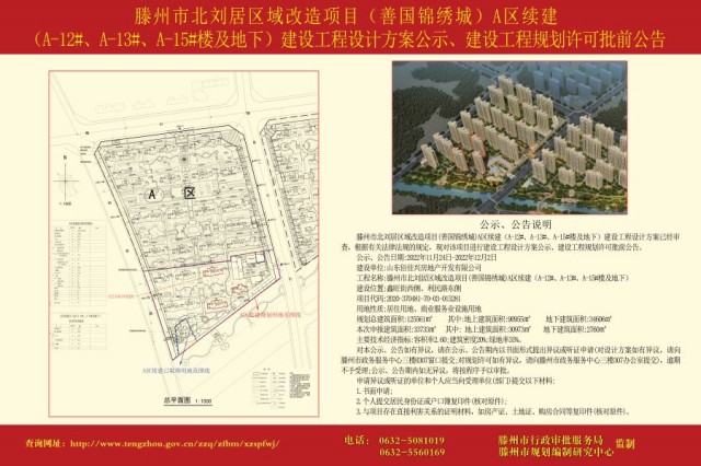北劉居區域改造項目A區續建建設工程設計方案公示、建設工程規劃許可批前公告