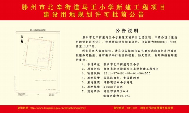 北辛街道馬王小學新建工程項目建設用地規劃許可批前公告