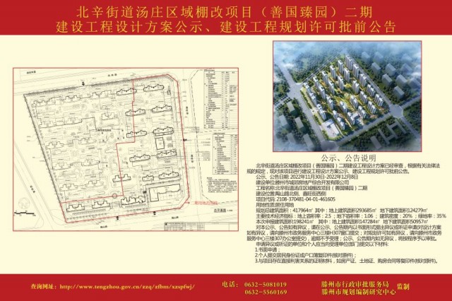 北辛街道湯莊區域棚改項目二期建設工程設計方案公示、建設工程規劃許可批前公告