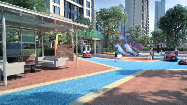 柳岸風和緊鄰馮河濱水公園,公園內配套建設有生態綠島、休閑廣場、濱水平臺、兒童樂園、健身步道等。以景觀綠化為載體的“療愈系”園林景觀,以提高園區富氧指數的方式,給予“健康人居”更具體的答案。