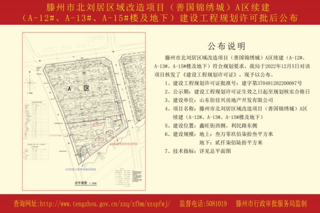 北劉居區域改造項目A區續建建設工程規劃許可批后公布