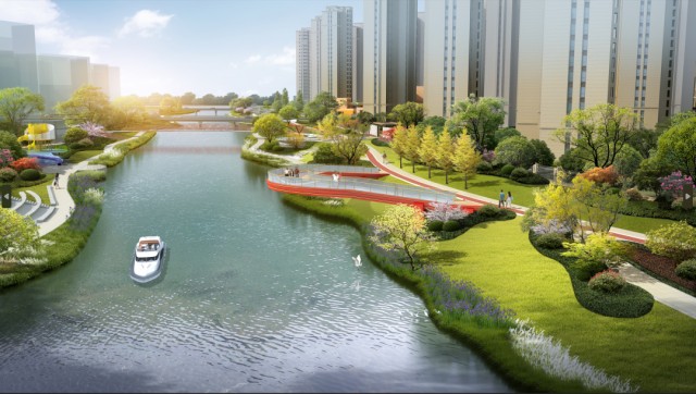 善國錦繡城擁攬馮河央芯精粹,于馮河沿線締造錦繡公園,于利民路西側匠心打造如意公園。雙公園相得益彰,勾勒出一幅綠色全維多層次自然盛境。錦繡公園“一環兩區八節點”的園區設計規劃,通過綠道串聯多處景觀節點,形成動靜結合,漸進豐富的游園動線和綠植景觀;多維度、多層次的親水平臺、寬闊的陽光草坪提供罕有的親水近水體驗,為健康生活注氧賦能。