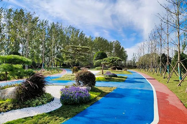 滕州市聚焦城市公園綠地建設,在荊河上游連片打造了集“泉文化”、“童趣樂園”、“花海漫步”、“健康運動”為一體的城東片區會客廳——荊泉公園。項目按照親民、惠民、便民的建設理念,塑造一個綠色公共開放空間,打造一個生機活力、多樣休閑、慢行生活、人文特質的城市水岸公園。在馮河下游,打造了振興公園并結合海綿城市建設、周邊土地整合利用,進行河道拓寬、水質凈化、節點塑造、園林綠化等建設,成為西北部城區的泄洪和生態通道,形成帶狀生態水岸公園,打造一條綠色生態廊道。